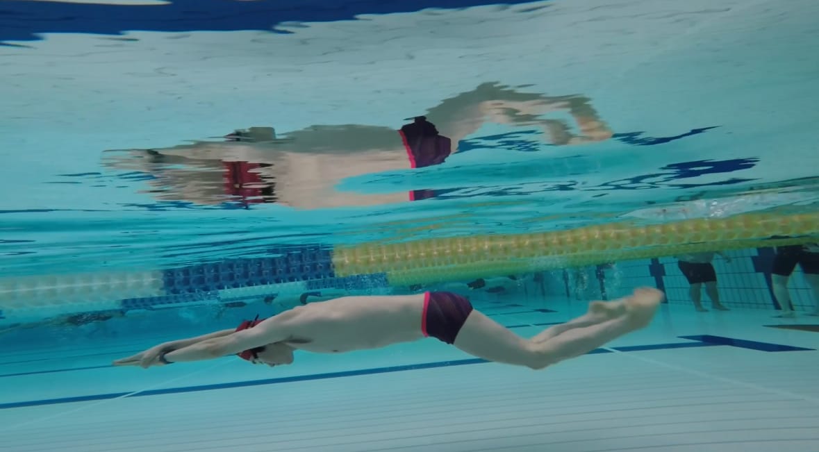 もちろん!水中ドルフィンキックは スタートやターン後の加速 に不可欠なテクニックだよ。トップスイマーほど、この動作を効果的に活用しているんだ